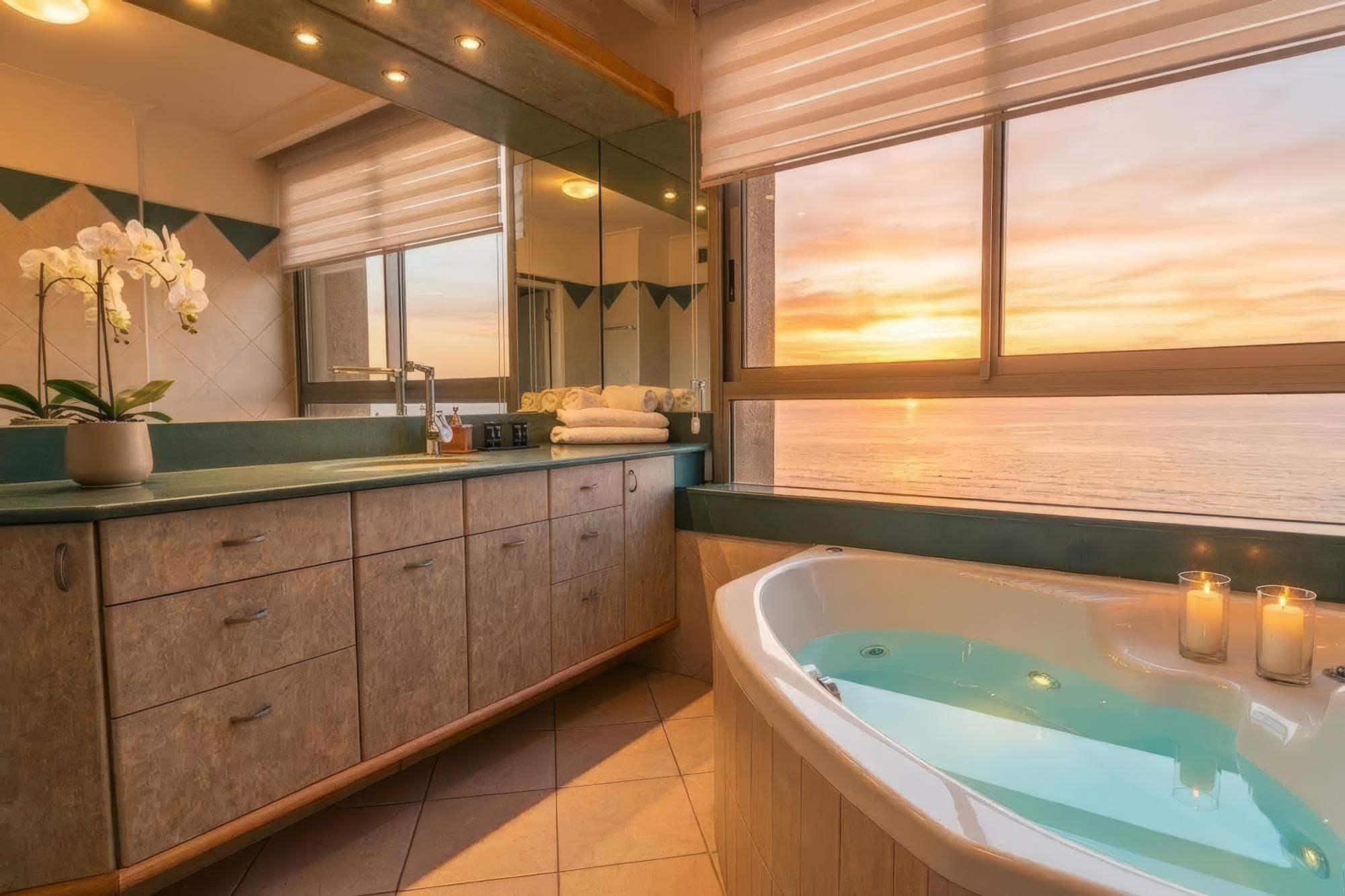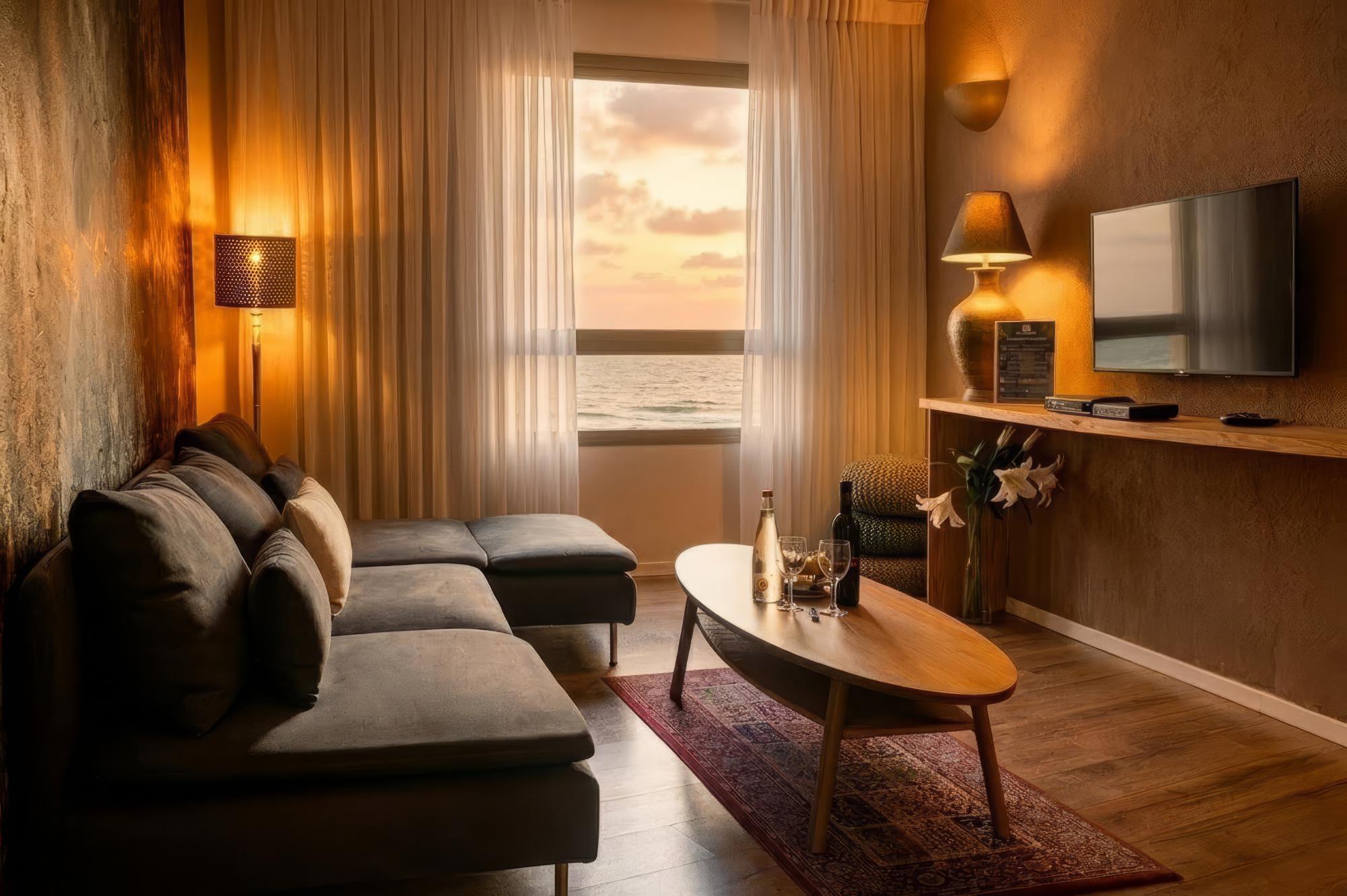 סוויטת נופש גדולה מול נוף לים אשר כוללת חדר שינה מרווח וסלון גדול, לרשותכם מיטה זוגית מפנקת עם מצעי כותנה וכריות נוחות, מטבחון מצויד עם מיקרוגל, מיני בר, קומקום חשמלי ופינת קפה עשירה, סלון ישיבה נוח מול מסך צפייה המחובר למגוון ערוצי צפייה, מיזוג אוויר, חדר רחצה מעוצב הכולל מקלחת, שירותים ומגבות רכות, אינטרנט אלחוטי. כמו כן ניתן להזמין אלכוהול וכיבוד (בתיאום מראש)