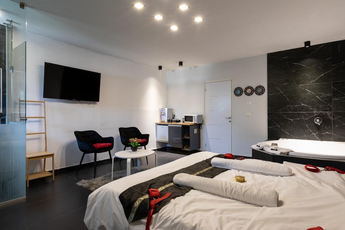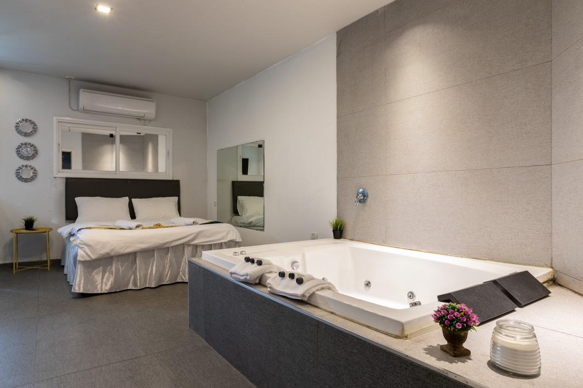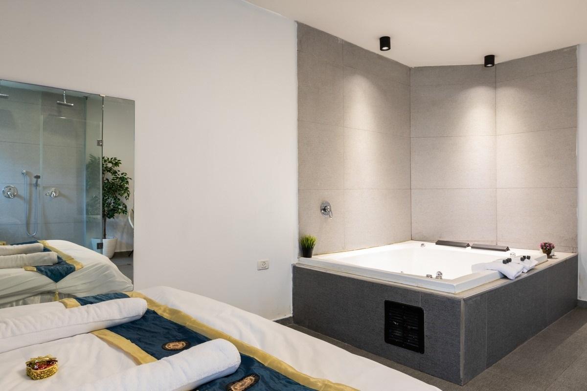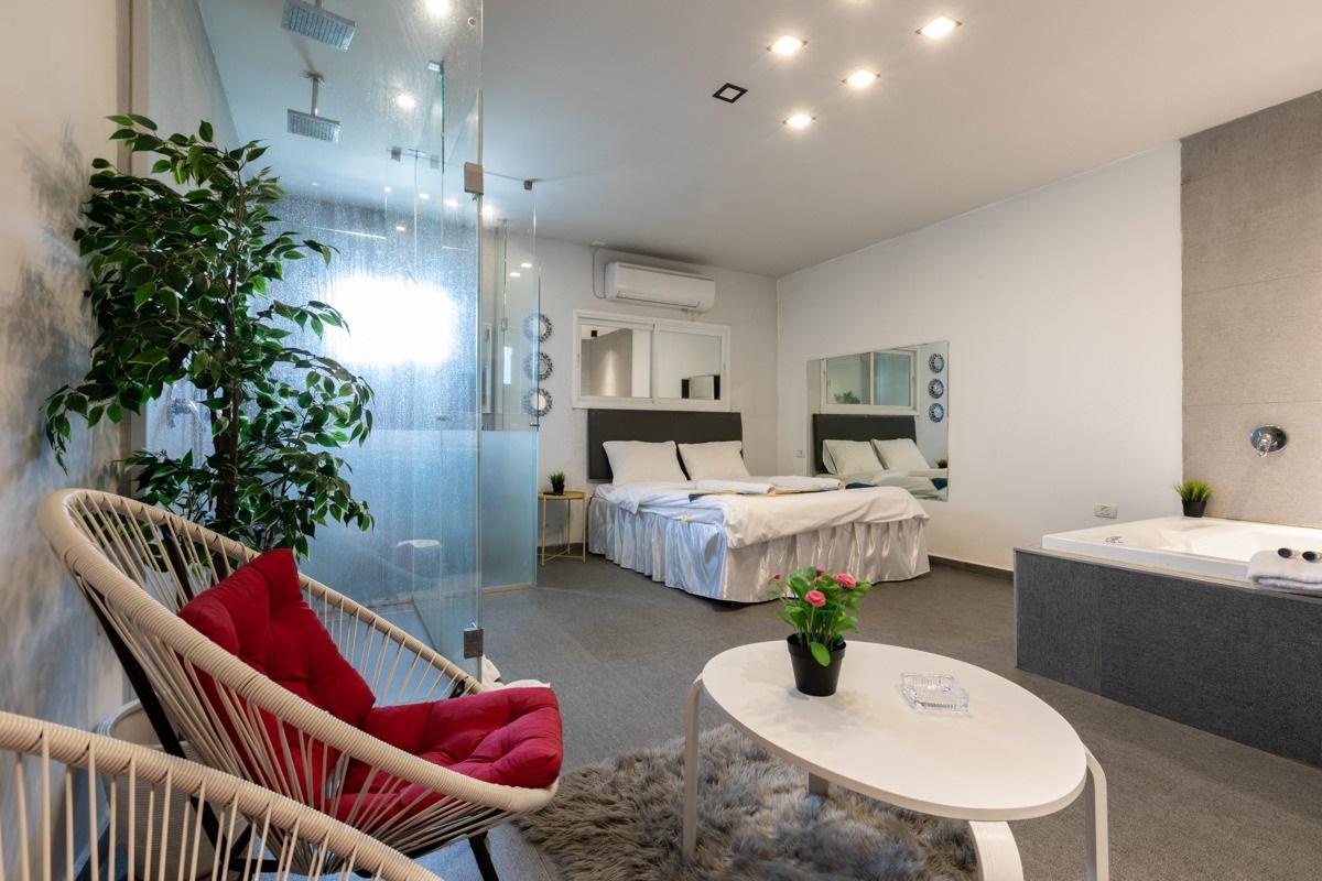 טעימה קטנה מהסוויטות שלנו: כל סוויטה עוצבה בסגנון ייחודי לה, בכולן ג'קוזי זרמים מרווח , חדר רחצה מודרני עם מוצרי רחצה ומגבות גוף, מיטה רחבה עם מזרן אורתופדי וכריות נוחות, מצעי כותנה נעימים, זוג כורסאות דקורטיביות, מסך TV עם סרטים ומוזיקה, מטבחון מלא בפינוקים בקבוק יין משובח, פינת קפה ושתייה חמה, מים מינרליים ועוד. מגוון פינוקים על חשבון הבית - שאלו אותנו