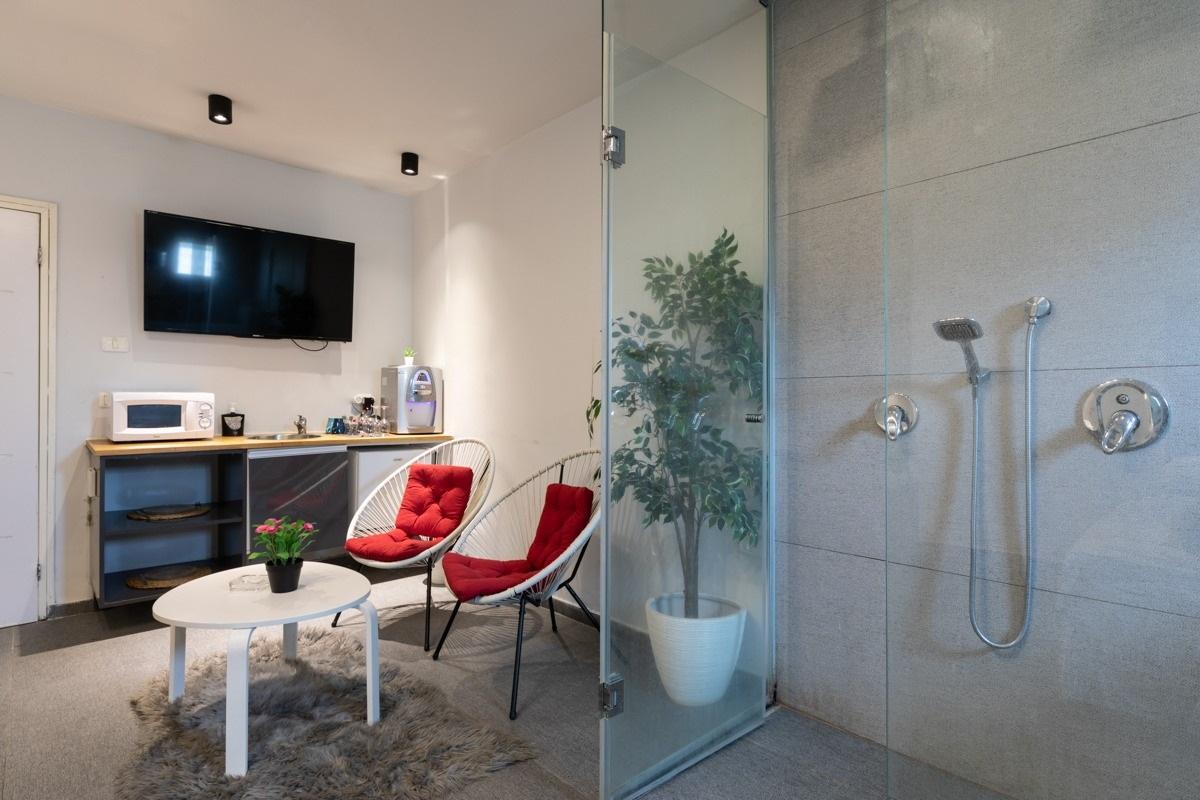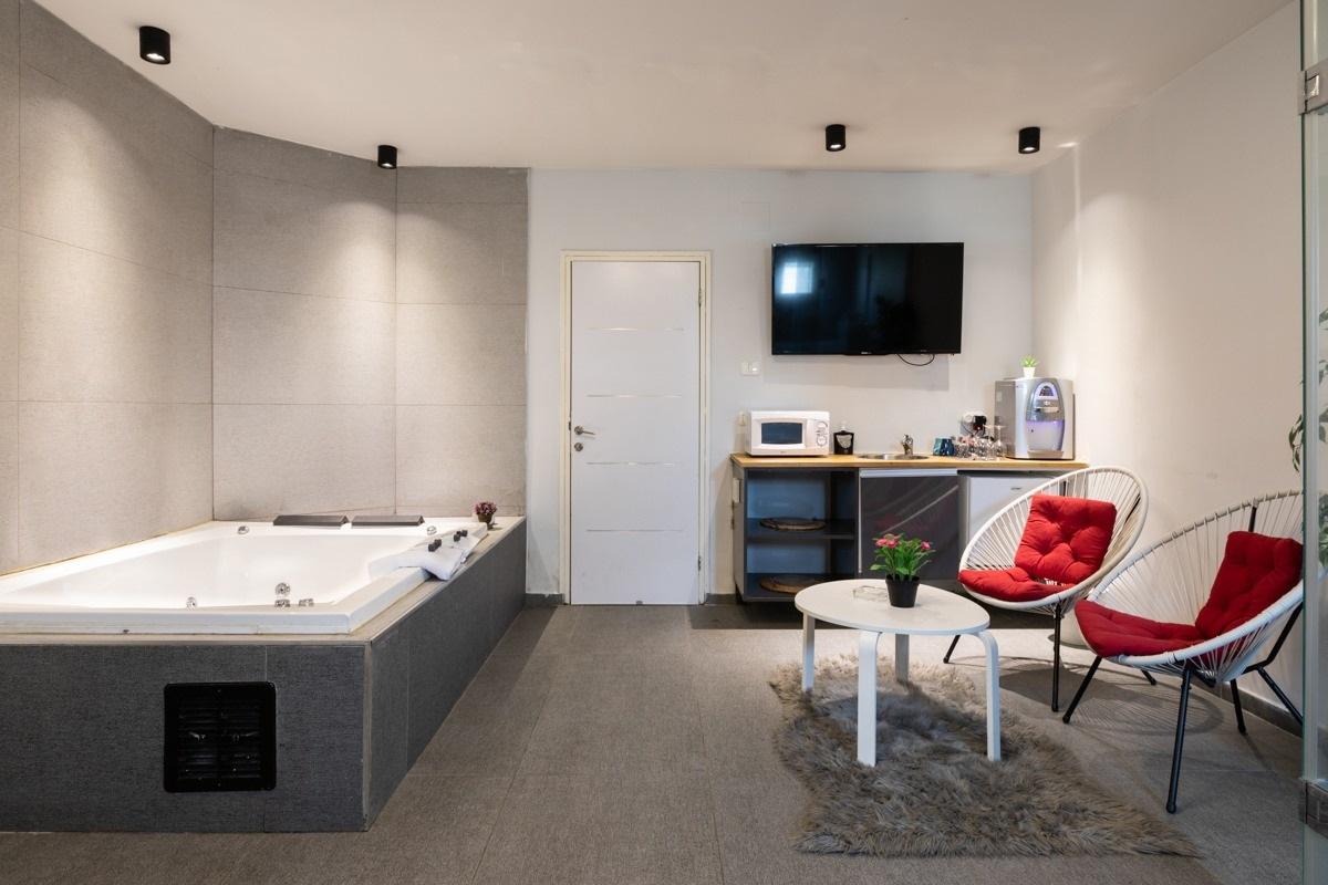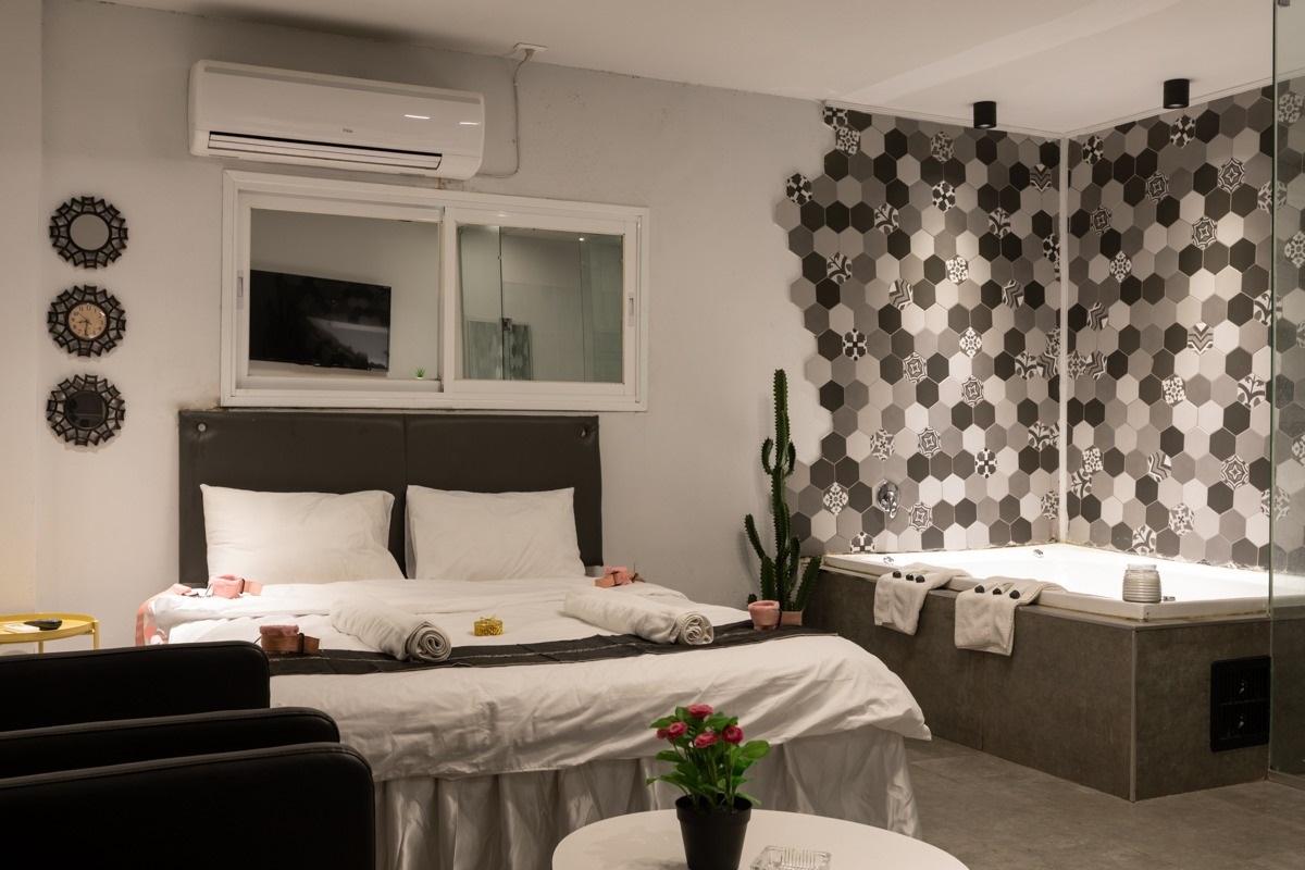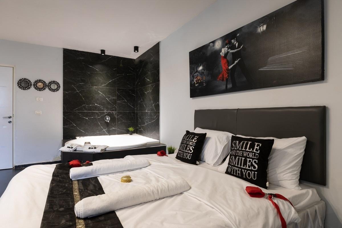 טעימה קטנה מהסוויטות שלנו: כל סוויטה עוצבה בסגנון ייחודי לה, בכולן ג'קוזי זרמים מרווח , חדר רחצה מודרני עם מוצרי רחצה ומגבות גוף, מיטה רחבה עם מזרן אורתופדי וכריות נוחות, מצעי כותנה נעימים, זוג כורסאות דקורטיביות, מסך TV עם סרטים ומוזיקה, מטבחון מלא בפינוקים בקבוק יין משובח, פינת קפה ושתייה חמה, מים מינרליים ועוד. מגוון פינוקים על חשבון הבית - שאלו אותנו