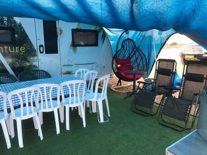 מחוץ לקרוואן פינות ישיבה מוצלות, מיטת שיזוף, מדשאה סינטטית ועוד.