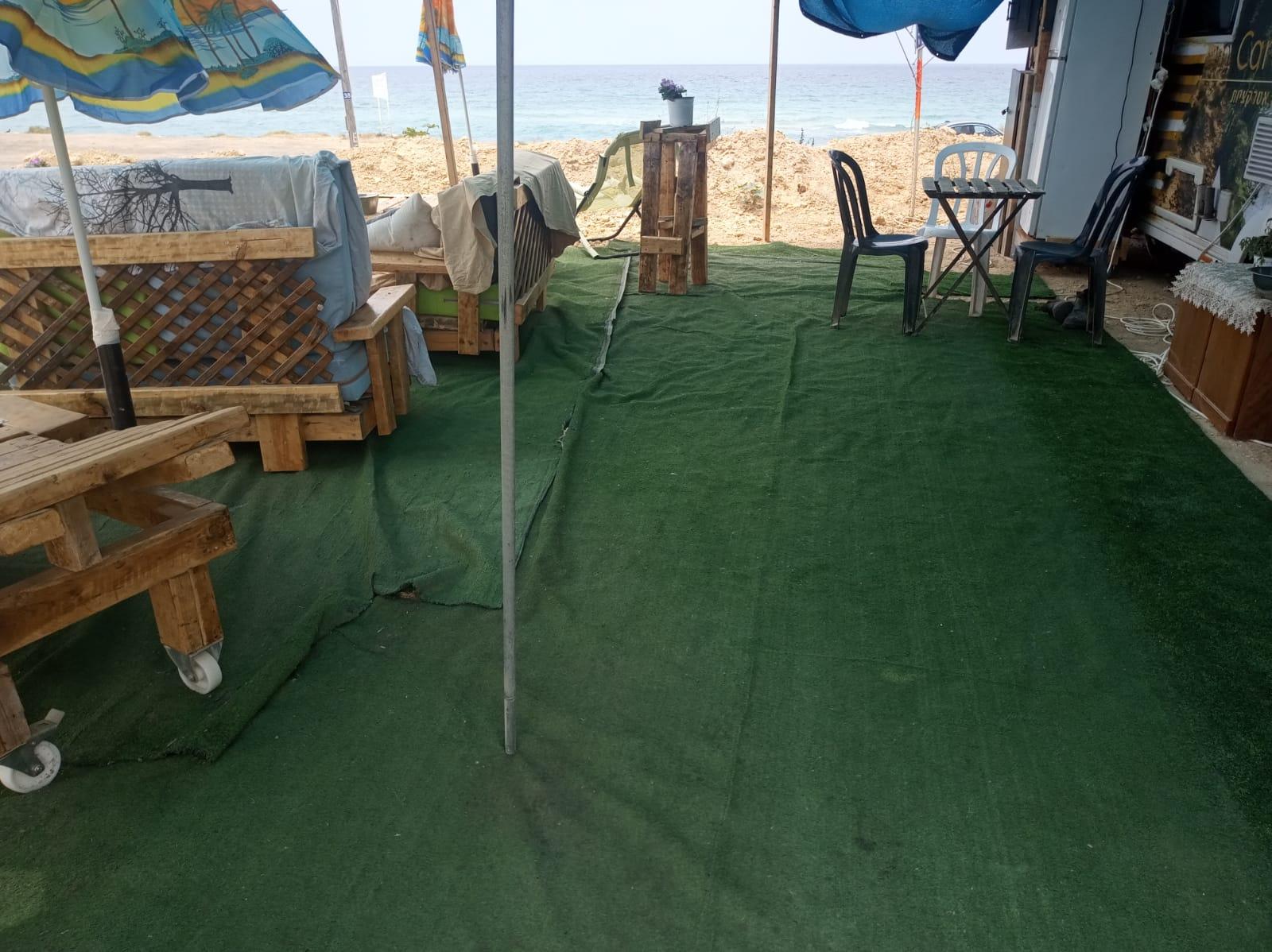 הקרוואן ממוקם בפינה שקטה ומבודדת על קו החוף בנהריה, לצידו חניה צמודה.