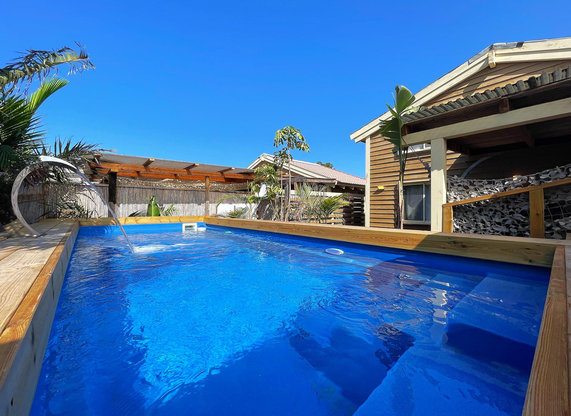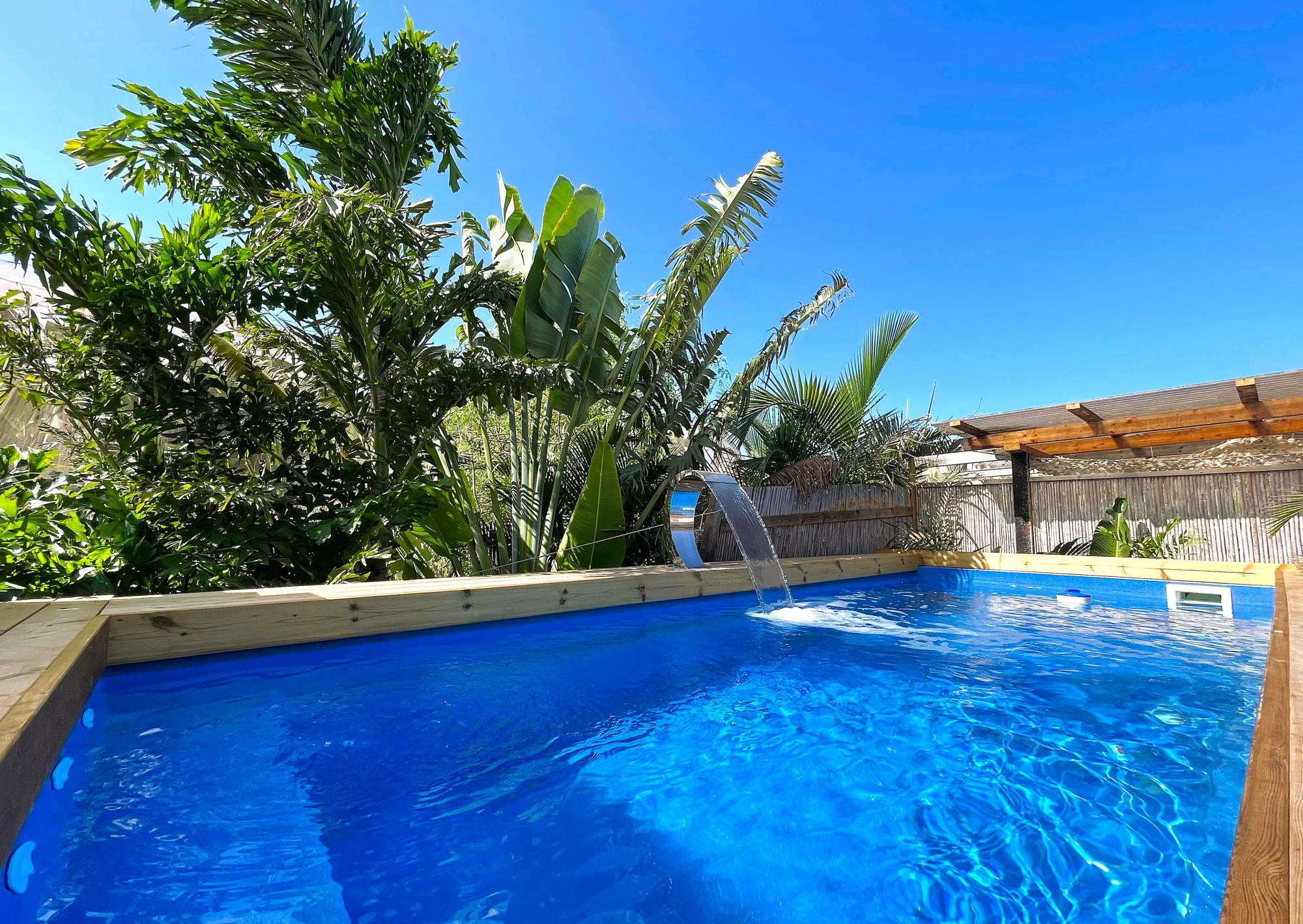 בצימר יש יציאה לחצר אינטימית, גן עדן פסטורלי ופרטי עם פינת ישיבה, בריכה פרטית, ג'קוזי ספא ותאורה לעת ערב.