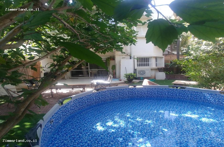 בחצר הדירה, שפע צמחיה המוסיפה לאווירה הכפרית המדהימה. בריכת שחייה ומקומות ישיבה מוצלים.