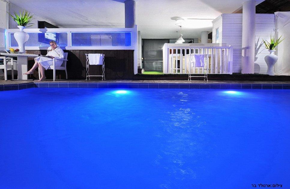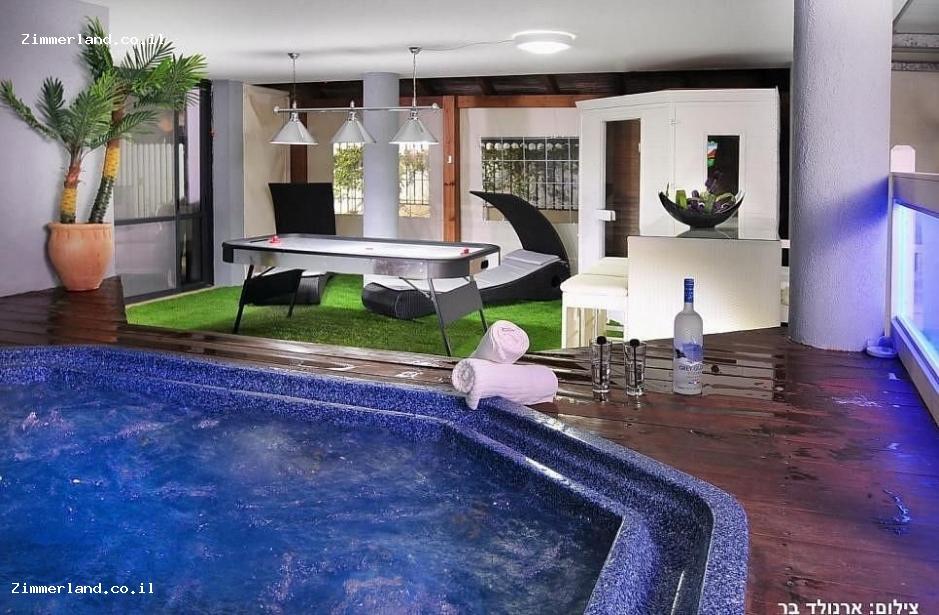 בחצר הסוויטות נבנתה בריכת שחייה גדולה, מקורה ומחוממת בחורף, ג'קוזי זרמים מפנק, סאונה יבשה, פינת מגל, פינות ישיבה, מיטות שיזוף ותאורת גן לשעות הערב...