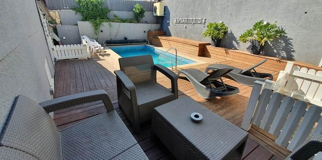 מהסוויטות ישנה יציאה אל חצר מטופחת ומסודרת, בה תמתין לכם בריכת שחייה בנויה מחוממת ומקורה בימי החורף, ג'קוזי זרמים מפנק, מיטות שיזוף, ברביקיו, פינות ישיבה מוצלות ותאורה לשעות הערב.