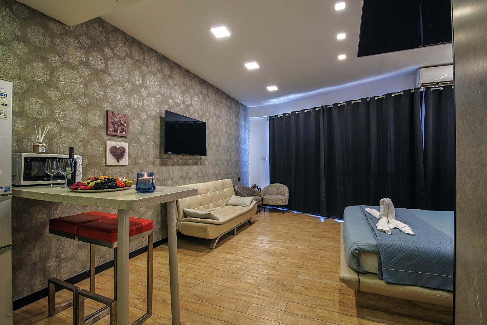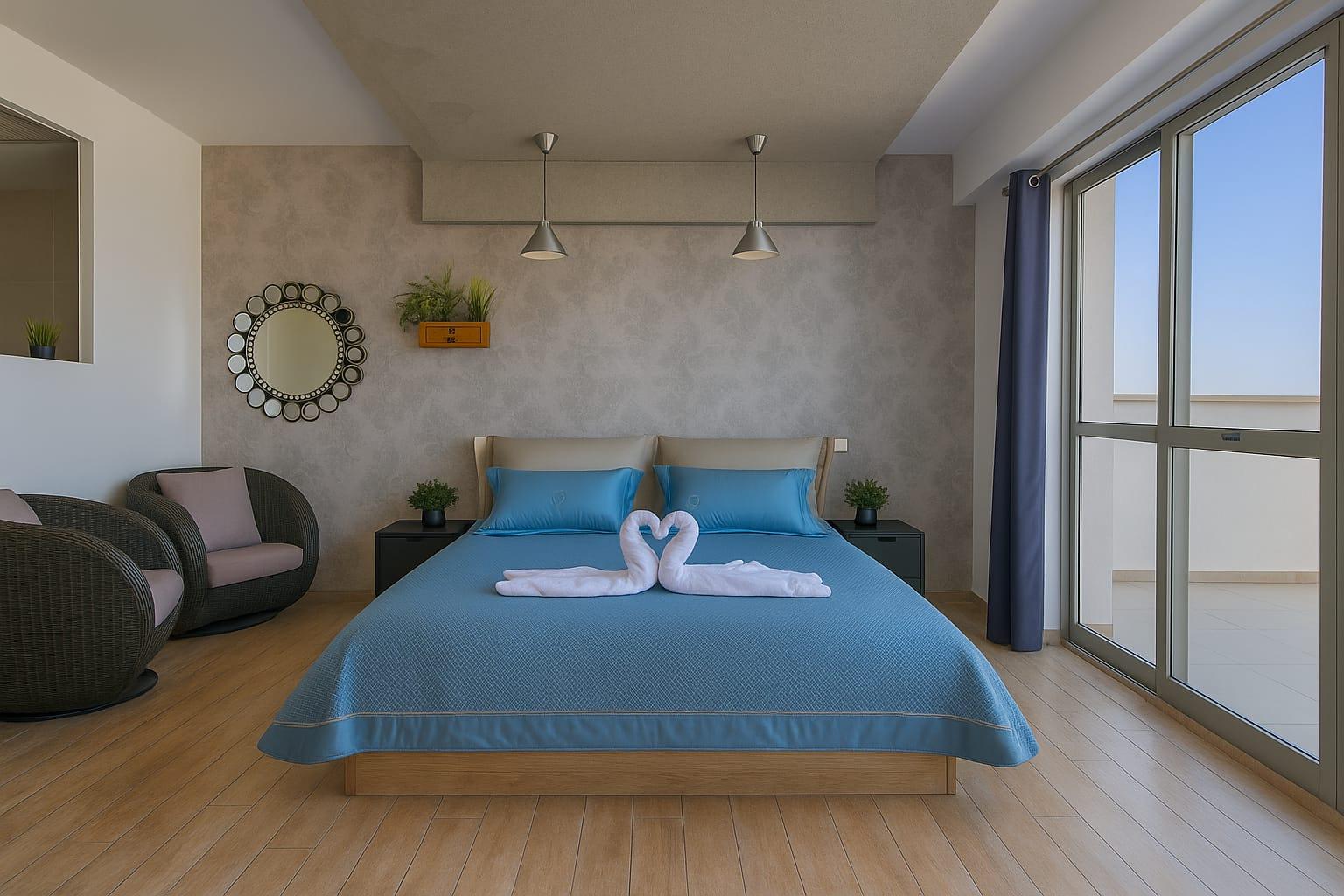 מה בסוויטות: open space מעוצב בסגנון אירופאי, קו נקי וחדשני שלא רואים כל יום, מיטה זוגית מרווחת עם מזרן אורתופדי, פינת ישיבה זוגית, LCD מחוברת ללוויין, מקלחת ג'טים, מוצרי רחצה ומגבות גוף, מטבח עם פינת קפה עשירה, פינת בר עם כיסאות גבוהים דקורטיביים, מרפסת נוף לים.