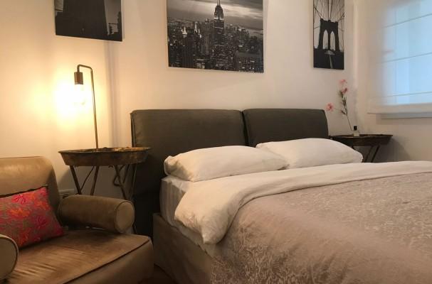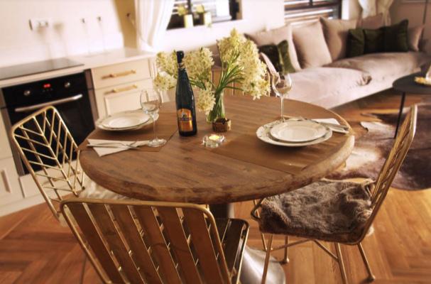 דירת 2 חדרים מרווחת עם רצפת פרקט נעימה ובה חדר שינה עם תאורה רומנטית, מיטה זוגית מרופדת ומוצעת ומסך TV 50 אינץ'. סלון מרווח עם ריהוט בסגנון וינטג' ויקטוריאני, טלויזיה בכבלים 50 אינץ', מטבח מצויד המציע פינת אוכל עשויה עץ משובח, בקבוק יין, מכונת אספרסו עם קפסולות, פיצוחים, עוגות ושתייה קלה. חדר רחצה מגבות ומוצרי טואלטיקה.