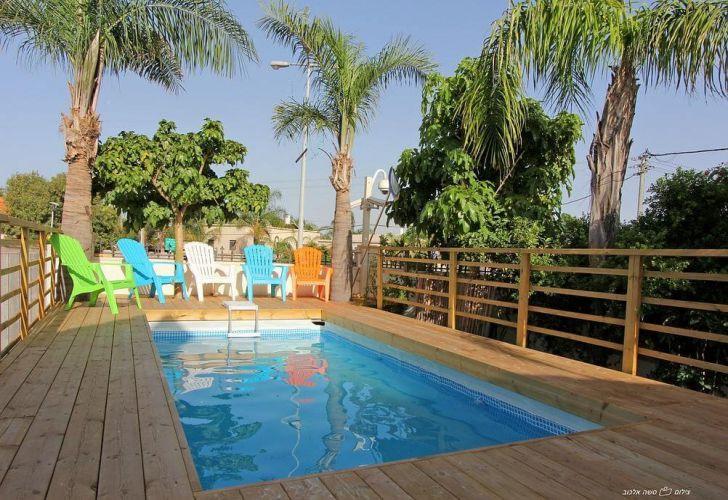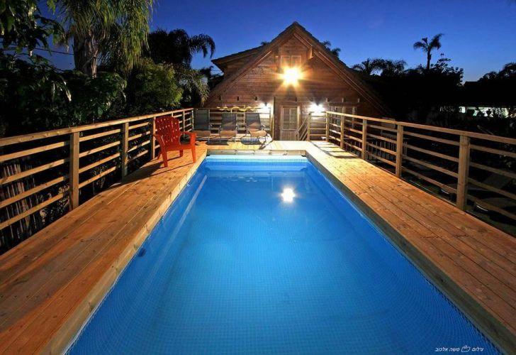 בחצר המקום: חצר עטופה בסביבה ירוקה ופסטורלית, צמחייה שופעת ועצים בגבהים שונים המשתרעת על שטח נרחב, בריכת שחייה פרטית, פינות ישיבה מוצלות, מיטות שיזוף, פינת ברביקיו ותאורת לילה רומנטית