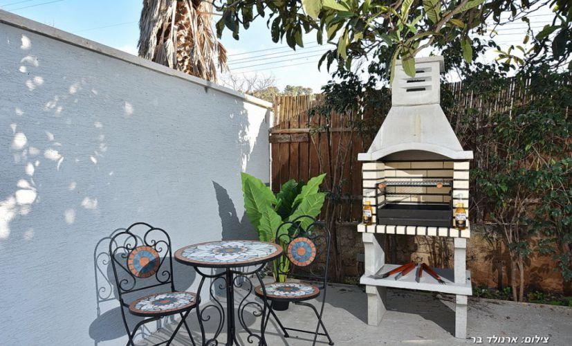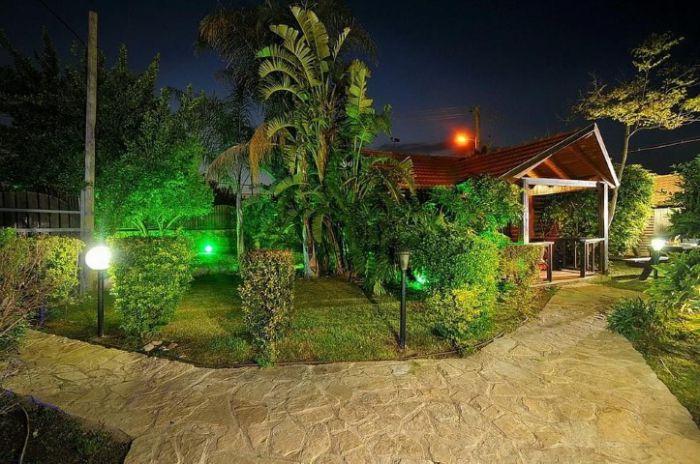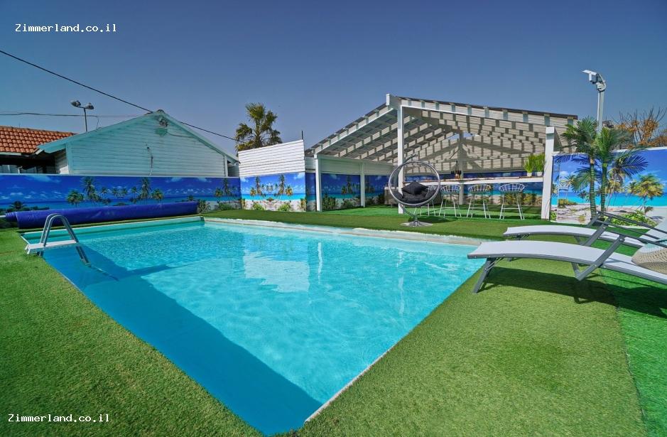 חצר: חצר טרופית שופעת בפרחי נוי ועצי נוי, מדשאה מטופחת, בריכת שחייה גדולה מאוד, מיטות שיזוף, פינות ישיבה מוצלות ועוד.
