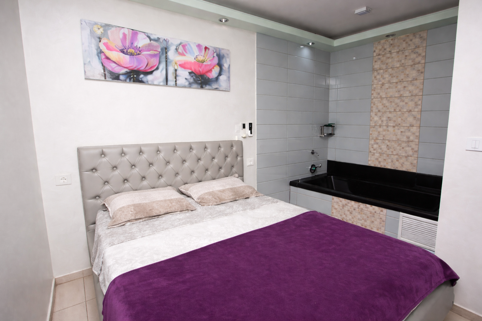 סוויטה מפוארת עם ג'קוזי - 250 ש"ח לשעה, 300 ש"ח לשעתיים. שעה נוספת 50 שח