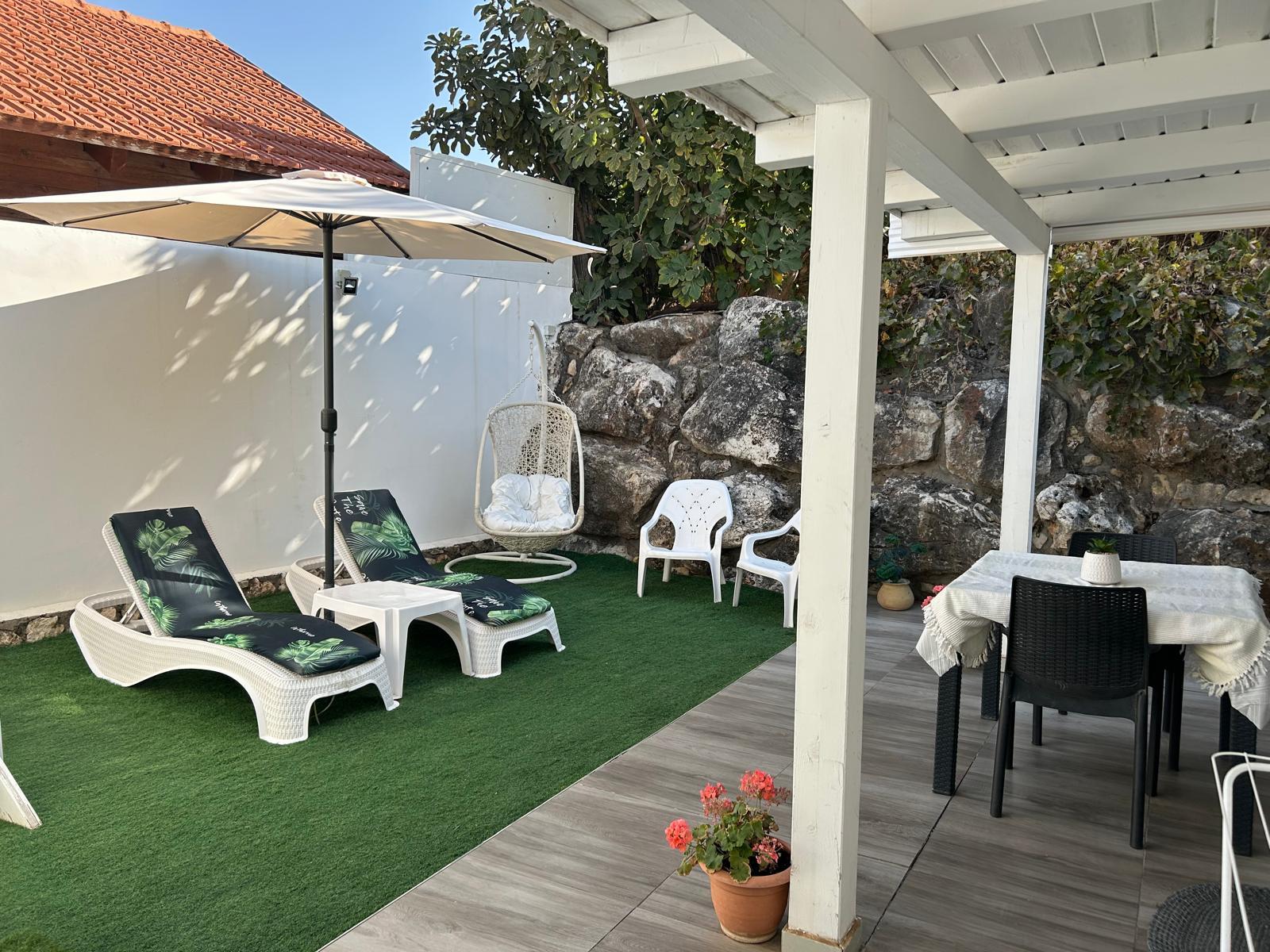 בחוץ ממתינה לכם חצר פסטורלית עם בריכה פרטית (מחוממת בחורף!), פינת ישיבה זוגית, ערסל מרגיע, עמדת מנגל ותאורת ערב רומנטית.