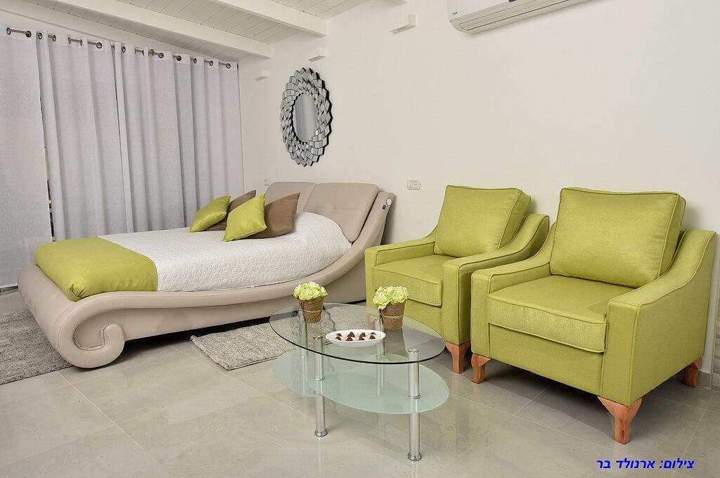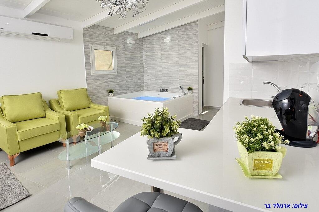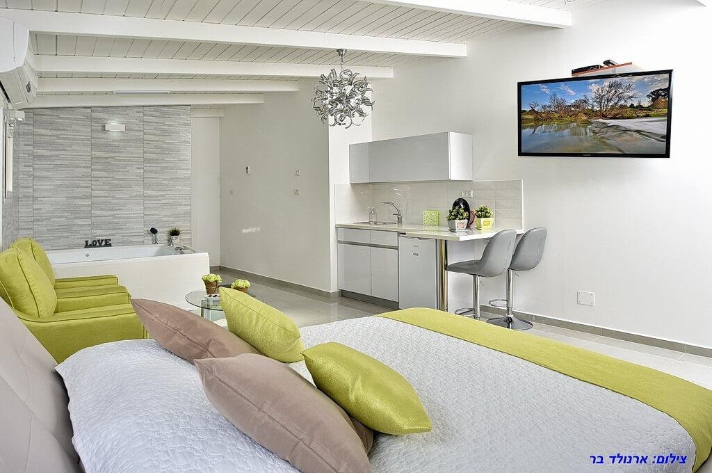 בצימר תיהנו מחלל סטודיו המכיל עיצוב פנים מוקפד ואבזור מלא - מיטה זוגית רחבה, ג'קוזי זרמים ענק ומפנק, מטבחון מאובזר הכולל פינת קפה, מקרר מיני בר וכלי הגשה, פינת ישיבה זוגית, טלוויזיה בכבלים, מיזוג אוויר וחדר רחצה נקי עם מגבות וסבונים.