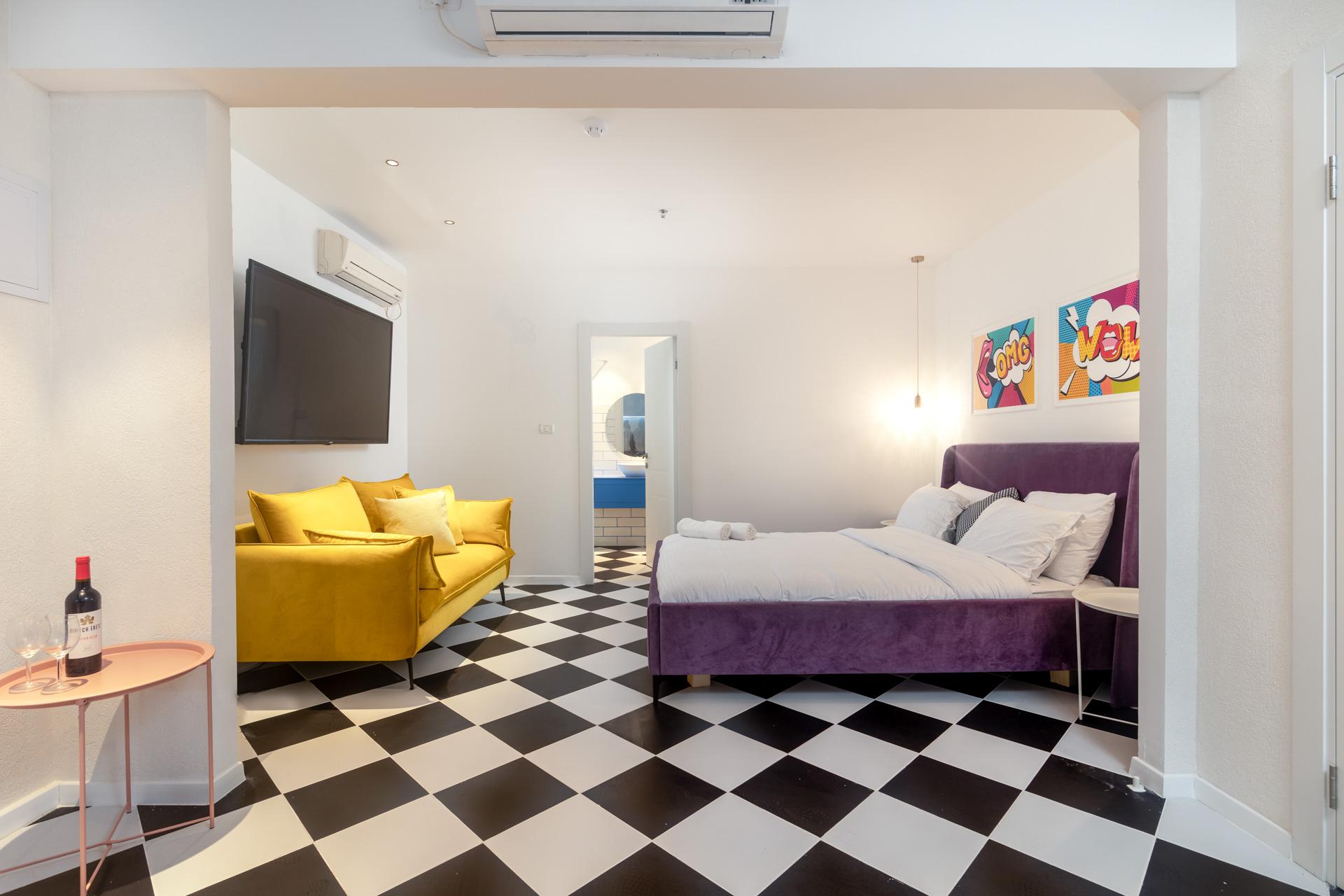 האירוח במתחם קינג הוטל בוטיק חדרים לפי שעה בתל אביב, מתאים לזוגות בלבד, להשכרה לפי שעות בכל שעות היממה.