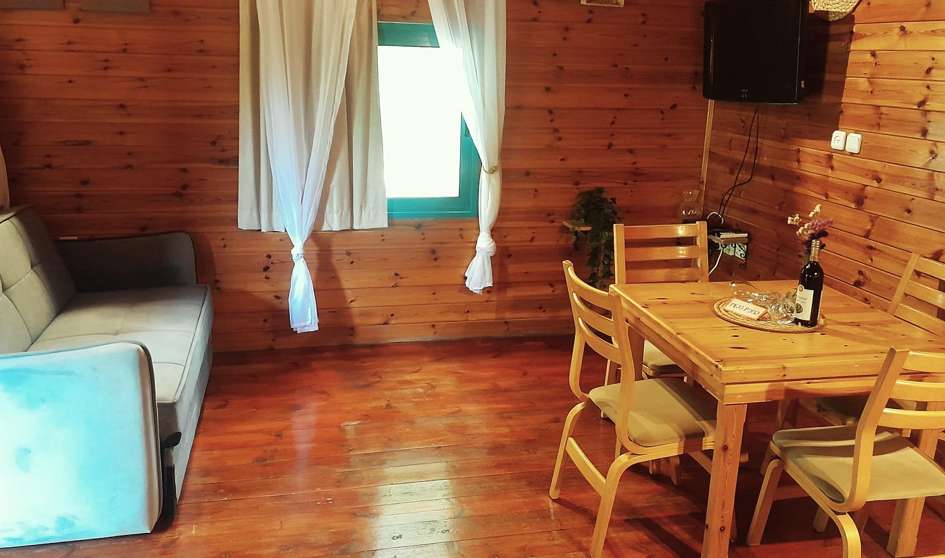 צימר 2 - צימר עם ג'קוזי ספא פרטי, מיטה זוגית מרווחת עם מצעים מפנקים, ספה נפתחת, חדר רחצה נקי עם מגבות וסבונים, מטבחון מאובזר וסלון עם מסך טלוויזיה בכבלים.