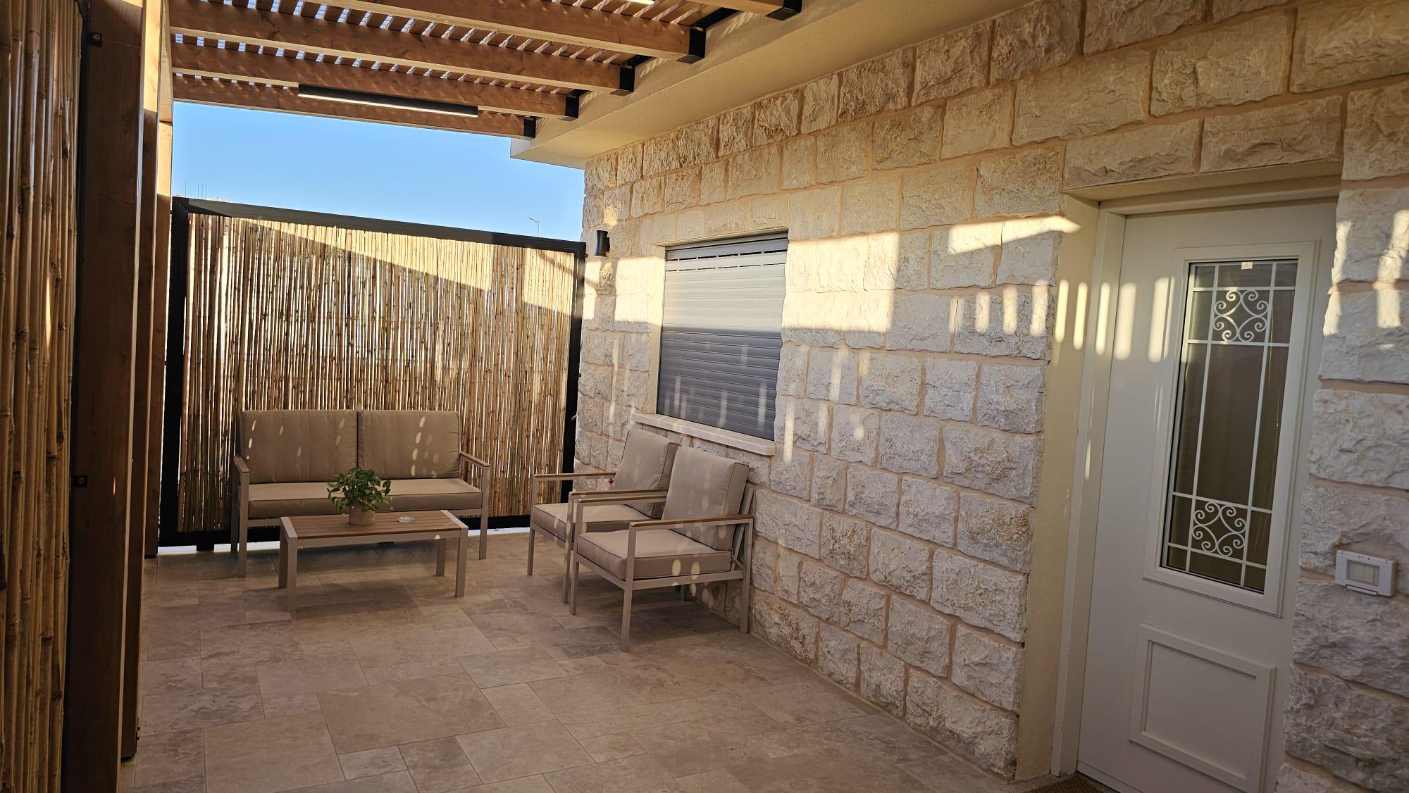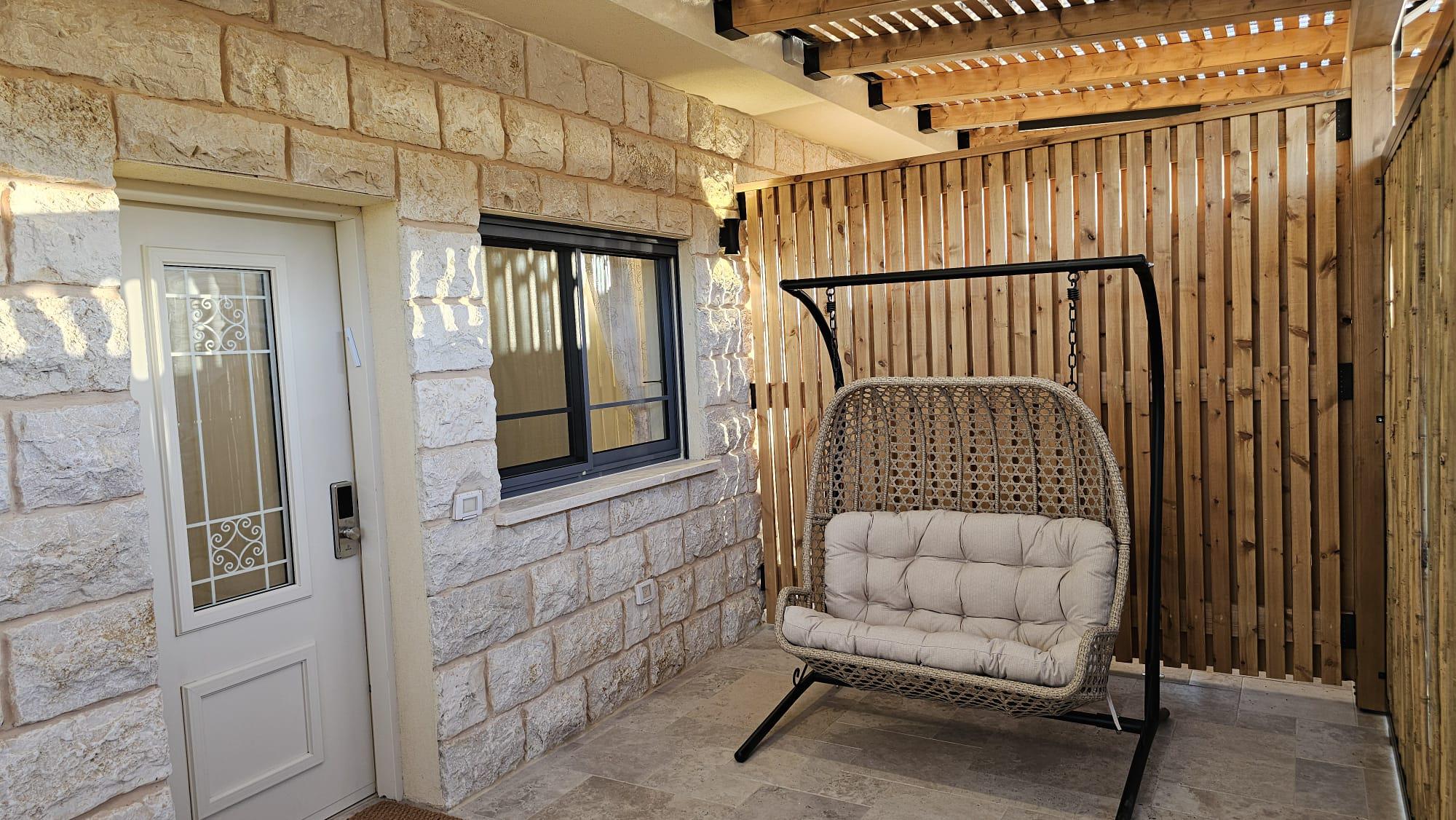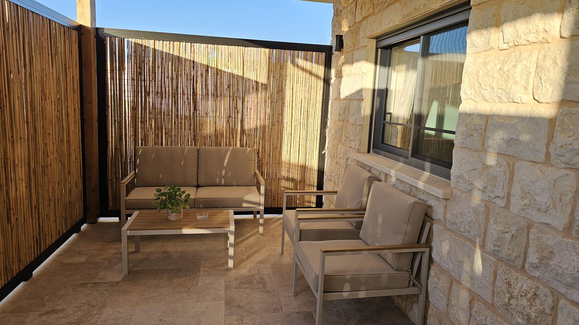 יציאה למרפסת פרטית עם ריהוט גן.
