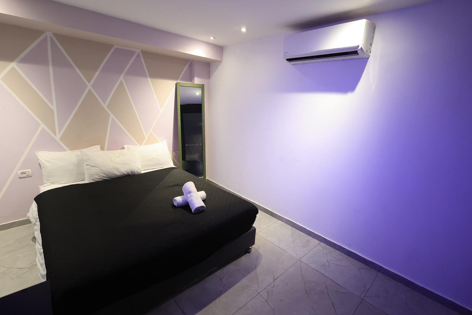 מיטה זוגית יוקרתית עם מצעים מפנקים, מיזוג אוויר, מסך טלוויזיה בכבלים, תאורה רומנטית, פינת ישיבה, פינת קפה או מכונת אספרסו מפנקת, מקרר מיני בר וחדר רחצה נקי הכולל מגבות נקיות וסבונים.