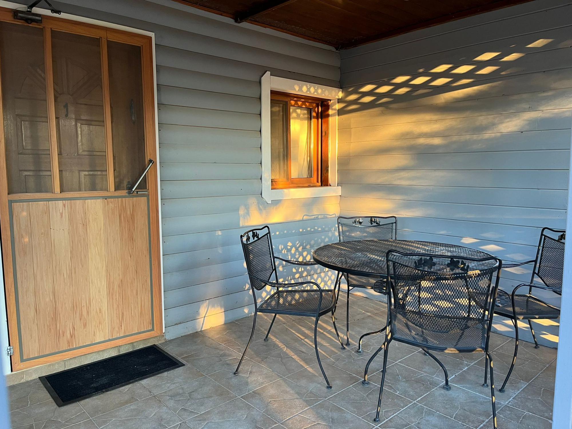 לכל צימר מרפסת קטנה ואינטימית עם פינת ישיבה ותאורה נעימה לשעות הערב.